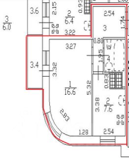 16,6 м²