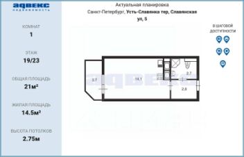 Площадь квартиры составляет 21 квадратный метр. Жилая площадь реализована в формате студии с чистовой отделкой. Высота потолков в помещении составляет 2,75 метра, в квартире предусмотрен совмещённый санузел и лоджия. Также имеется мебель на кухне и в санузле, что экономит расходы при заселении.