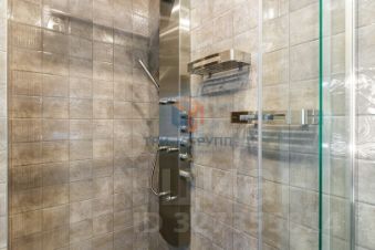 В отделке использованы натуральные дорогие материалы: паркетная доска, итальянская плитка, премиальная сантехника, разноуровневая подсветка.