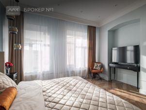 Дизайн квартиры не только эстетичен, но и функционален, для хранения вещей предусмотрены две вместительные гардеробные, расположенные в спальнях, в нишах - рабочие зоны. Два сан узла, плюс постирочная зона оборудованы системой фильтрации воды и премиальной сан. техникой. В квартире установлена система кондиционирования и теплые полы.