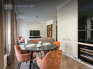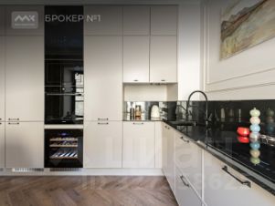 Кухня-гостиная оснащена премиальной бытовой техникой. Включает два холодильника, варочную электрическую поверхность, духовой и винный шкаф, посудомоечную машину. Эргономика кухни продумана до мелочей, которые удовлетворят самую требовательную хозяйку.