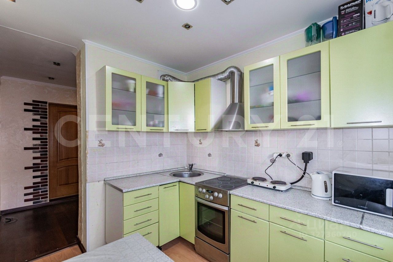 Кухня: Установлена современная электрическая плита и встроенный гарнитур.
