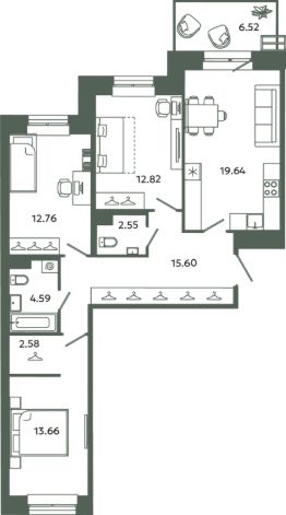 Продаётся 3-комнатная квартира в строящемся доме (Корпус 6-6), срок сдачи: IV-кв. 2027, общей площадью 86.16 кв.м., на 1 этаже. Новый жилой комплекс "Загляденье" от застройщика "СТ-3" расположен по адресу: Ленинградская область, Ломоносовский район, Аннинское городское поселение, городской посёлок Новоселье.