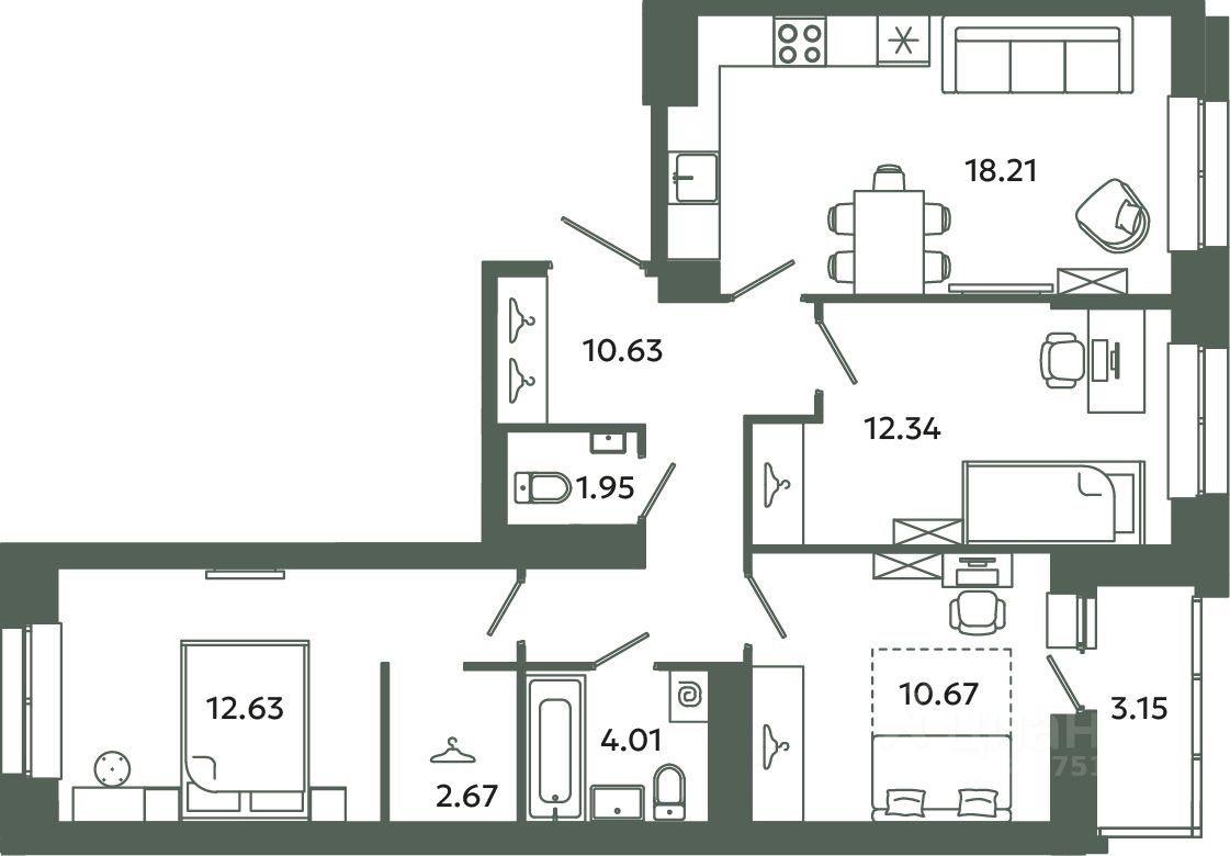 Продаётся 3-комнатная квартира в строящемся доме (Корпус 6-6), срок сдачи: IV-кв. 2027, общей площадью 74.69 кв.м., на 2 этаже. Новый жилой комплекс "Загляденье" от застройщика "СТ-3" расположен по адресу: Ленинградская область, Ломоносовский район, Аннинское городское поселение, городской посёлок Новоселье.
