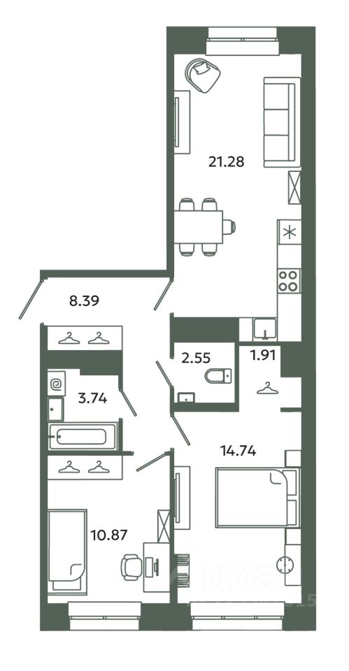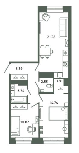 Продаётся 2-комнатная квартира в строящемся доме (Корпус 6-6), срок сдачи: IV-кв. 2027, общей площадью 63.48 кв.м., на 5 этаже. Новый жилой комплекс "Загляденье" от застройщика "СТ-3" расположен по адресу: Ленинградская область, Ломоносовский район, Аннинское городское поселение, городской посёлок Новоселье.