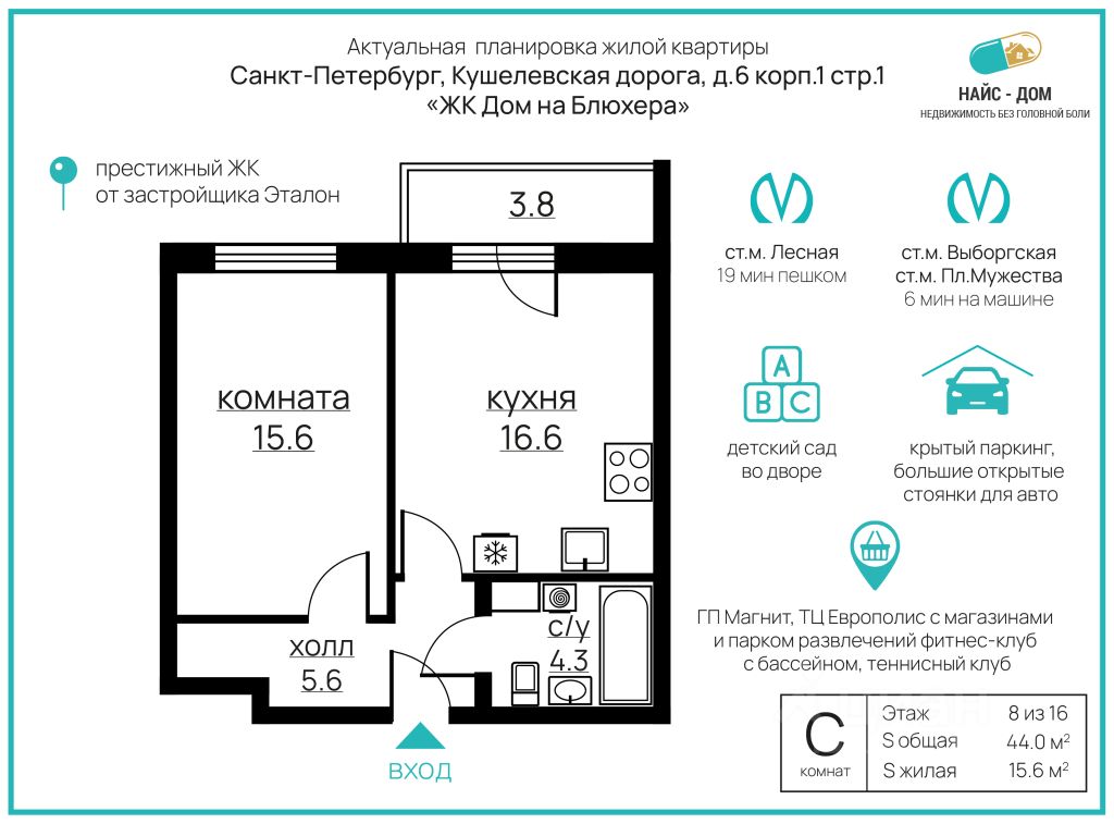 - Удобные выезды в центр и на Петроградскую сторону (1015 минут на авто).