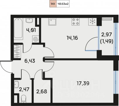 Продаётся 1-комнатная квартира в строящемся доме (Корпус 1), срок сдачи: II-кв. 2026, общей площадью 48.76 кв.м., на 3 этаже. Новый жилой дом от застройщика "Структура-4" расположен по адресу: Россия, Санкт-Петербург, набережная реки Смоленки, 8/86, литера Б