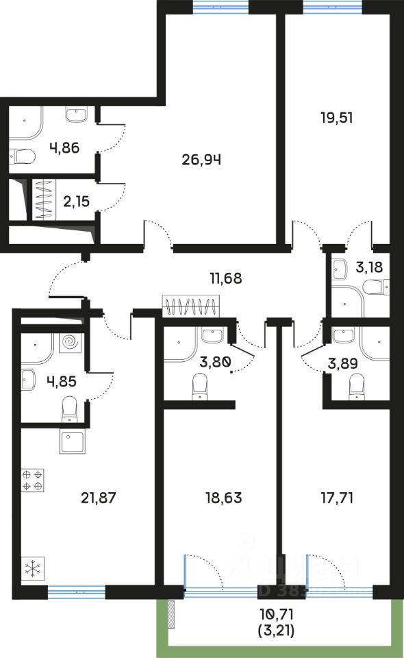 Продаётся 2-комнатная квартира в строящемся доме (Корпус 1), срок сдачи: II-кв. 2026, общей площадью 141.95 кв.м., на 1 этаже. Новый жилой дом от застройщика "Структура-4" расположен по адресу: Россия, Санкт-Петербург, набережная реки Смоленки, 8/86, литера Б