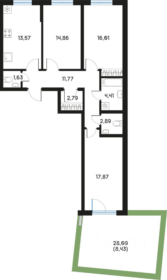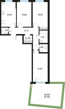 Продаётся 3-комнатная квартира в строящемся доме (Корпус 1), срок сдачи: II-кв. 2026, общей площадью 94.93 кв.м., на 1 этаже. Новый жилой дом от застройщика "Структура-4" расположен по адресу: Россия, Санкт-Петербург, набережная реки Смоленки, 8/86, литера Б