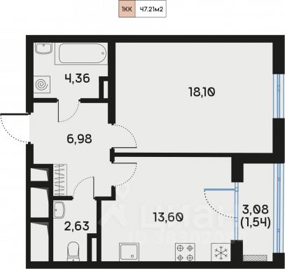 Продаётся 1-комнатная квартира в строящемся доме (Корпус 1), срок сдачи: II-кв. 2026, общей площадью 47.27 кв.м., на 3 этаже. Новый жилой дом от застройщика "Структура-4" расположен по адресу: Россия, Санкт-Петербург, набережная реки Смоленки, 8/86, литера Б