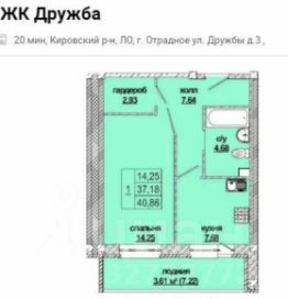 Продаётся однокомнатная квартира площадью 37.1 квадратных метров на первом этаже кирпичного дома, расположенного в спокойном районе города Отрадное на улице Дружбы, дом 3. Жилая площадь составляет 14.2 квадратных метров, кухня 7.7 квадратных метров, квартира оборудована большой лоджией в 7 кв. м. Площадь с учетом лоджии 40,8.