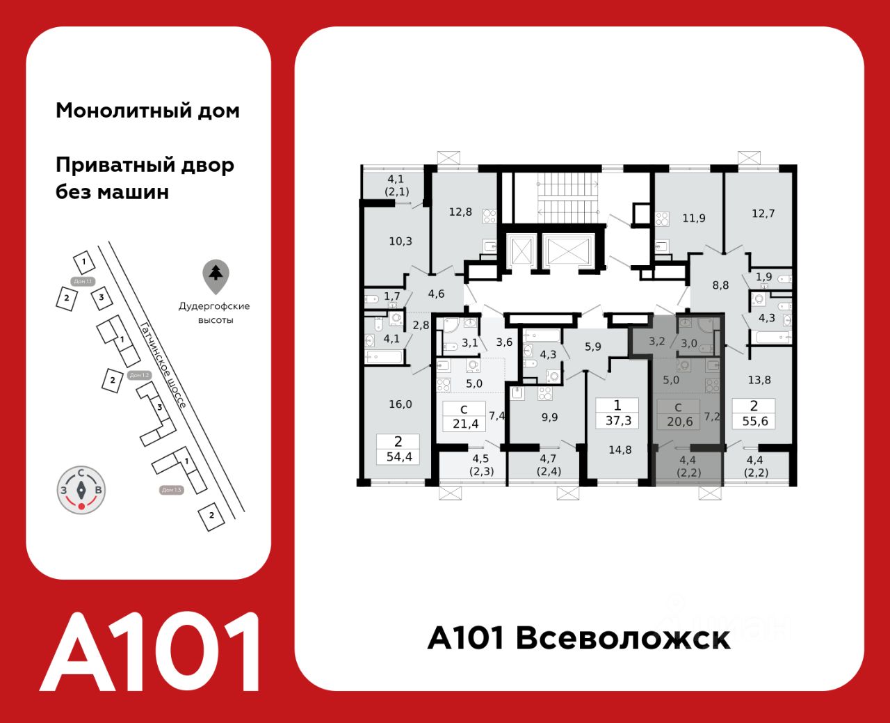 Студия площадью 20.70 в ЖК "А101 Всеволожск" c лоджией на 3 этаже. Квартира с предчистовой отделкой. Вид из окна во двор. В квартире 1 санузел. Высота потолков 2.80 м.