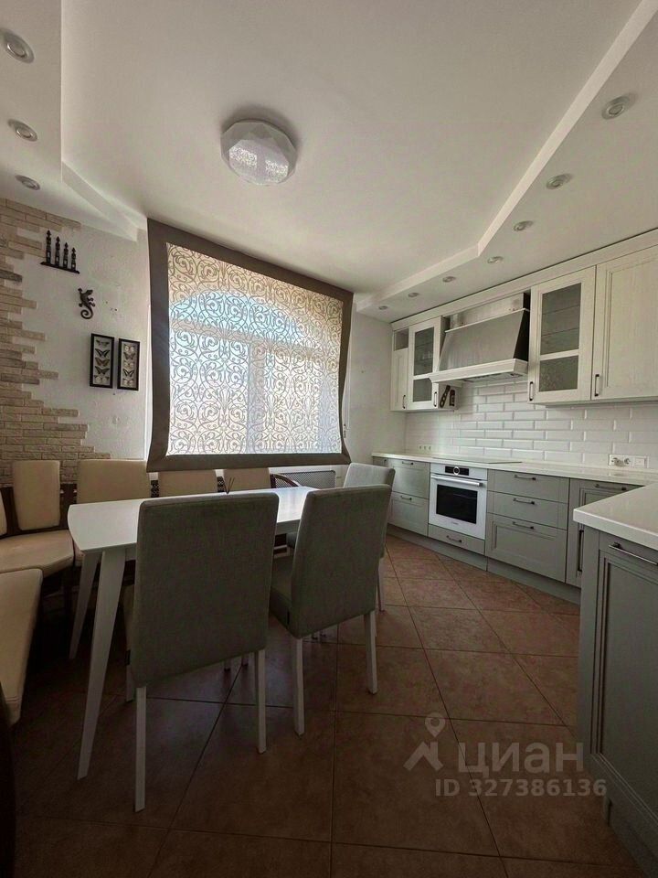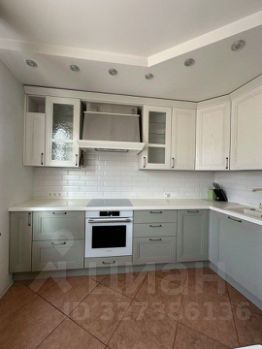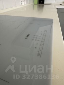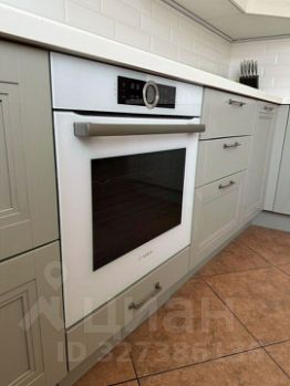 Кухня выполнена в современном стиле и оснащена встроенной техникой марки Bosch.