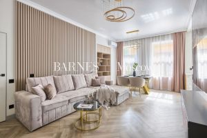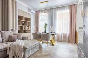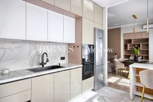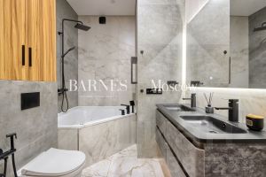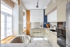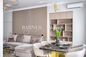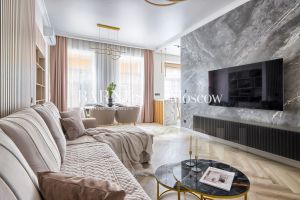 Наполнение и ремонт - Новый дизайнерский ремонт с 3мя изолированными (12.5 м2 + 13.5 м2 + 11.1 м2), кухней гостиной с зонированием места отдыха, обеденной зоной и приготовления (34.5 м2), 2 мя сан. узлами. Дизайн выполнен в тёплых пастельный тонах с использованием натурального дерева и плитки премиум-класса. Центральное место квартиры — кухня-гостиная. Благодаря удобной планировке, зона кухни, обеденная зона и гостиная чётко разделены Здесь удобно готовить, приятно ужинать всей семьёй и отдыхать перед большим экраном. Благодаря системе кондиционирования, высоким потолкам и большим окнам, в квартире очень много воздуха. К тому же она очень светлая.
