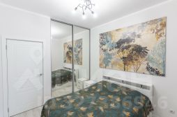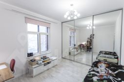 Родительская спальня с выходом на остеклённую лоджию с панорамным остеклением идеальное место для утреннего кофе или вечерних посиделок за чашкой чая. Вместительный шкафкупе спрятан так элегантно, что не занимает пространство.