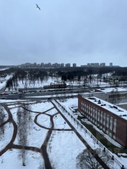 Квартира для семьи с замечательными видами из окон, последний этаж помогает смотреть на всё с высоты птичьего полета. Дом возвышается над зданиями рядом, виден Финский залив и Кронштадт.