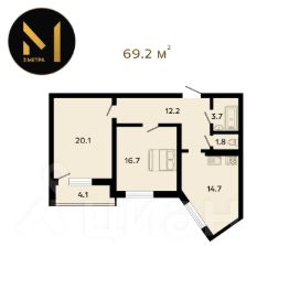 • Комнаты — 20,1 м² и 16,7 м²