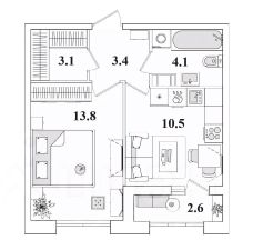 Арт. 68111113 В продаже однокомнатная квартира в жилом комплексе комфорт-класса "БелАрт".