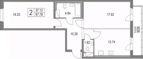 Арт. 106276674 В продаже просторная двухкомнатная квартира в жилом комплексе комфорт-класса "Приморский квартал",