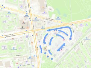 На первых этажах домов располагаются магазины, кафе, пекарни, службы доставки.