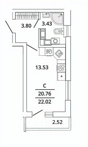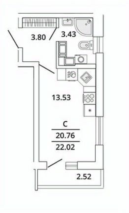 22,3 м²