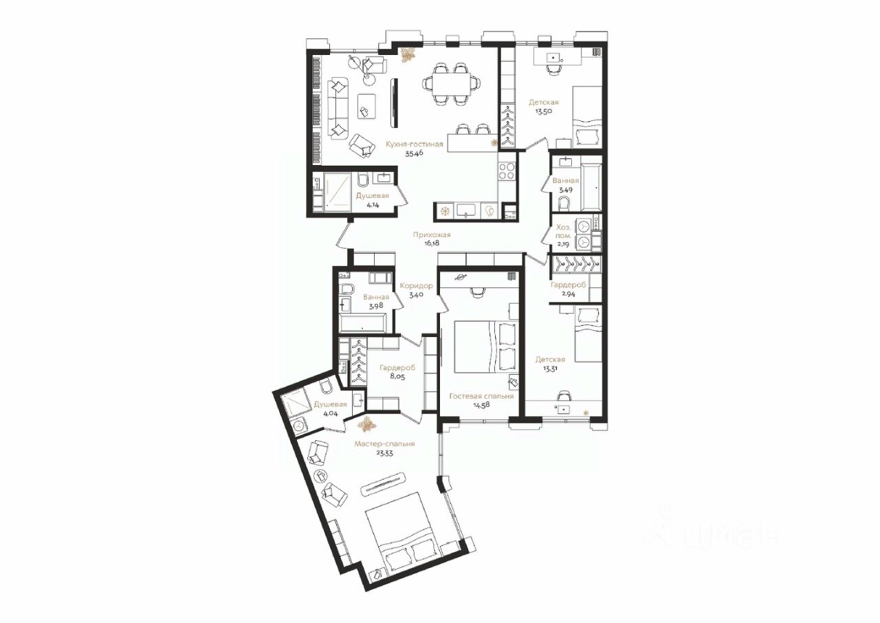 Продаётся 5-комнатная квартира в строящемся доме (Дом 38A 1 этап), срок сдачи: IV-кв. 2029, общей площадью 148.59 кв.м., на 5 этаже. Клубный квартал iD Petrogradskaya расположен в одном из самых престижных мест для жизни в Петербурге, между улицей профессора Попова и набережной реки Карповка.