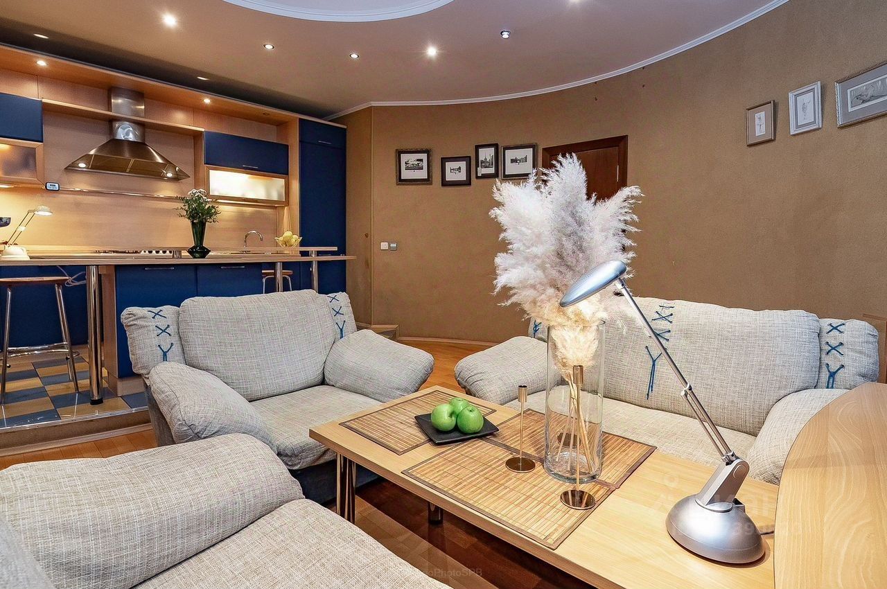 Зa cчет высокого 6-гo этажa из окoн квaртиры открывается неперекрываемый панорамный вид на изящные крыши домов, шпили и купола исторических зданий.