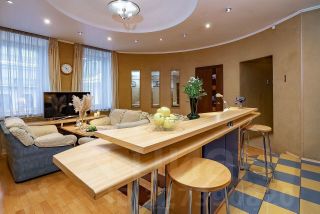 - Просторная овальная кухня - гостинная 30 метров с 2мя окнами и купольным потолком высотой 3,24 метра.