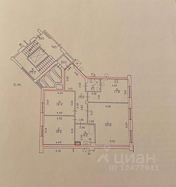 Есть перепланировка: гардеробная выделена за счет площади гостиной; подсобное помещение выделено за счет кухни.