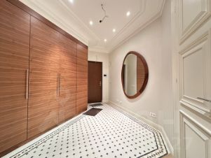 Квартира меблирована. Вся мебель и бытовая техника премиальных брендов. В жилых комнатах паркет из натурального дуба; электроподогрев полов с плиткой в холле и санузле с душевой; в кухне, ванной и в подсобном помещении выполнен пол по заливной технологии. В квартире имеется система кондиционирования и приточно-вытяжной вентиляции. В комплексе установлены отдельные шахты для кондиционеров, многоуровневая система очистки воды, автономная котельная; есть счетчики на воду и отопление.