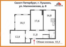 0-07, Предлагаем Вам купить отличную трехкомнатную квартиру в Пушкине у парка.