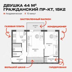 Продаю уютную 2-комнатную квартиpу 44 м²** в тихом уголке, вдaли от шумныx дорог — идeально для сeмьи!