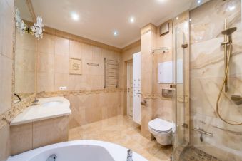 Качественная отделка: сантехника Geberit, подогрев полов, чешские хрустальные люстры, шпонированные двери (проемы 800 мм), кондиционеры в каждой комнате.