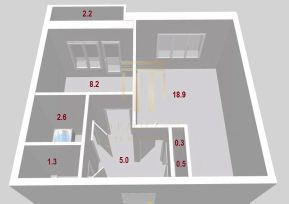 Комната 19 кв.м., кухня 8.2 кв.м. Раздельный с/у.