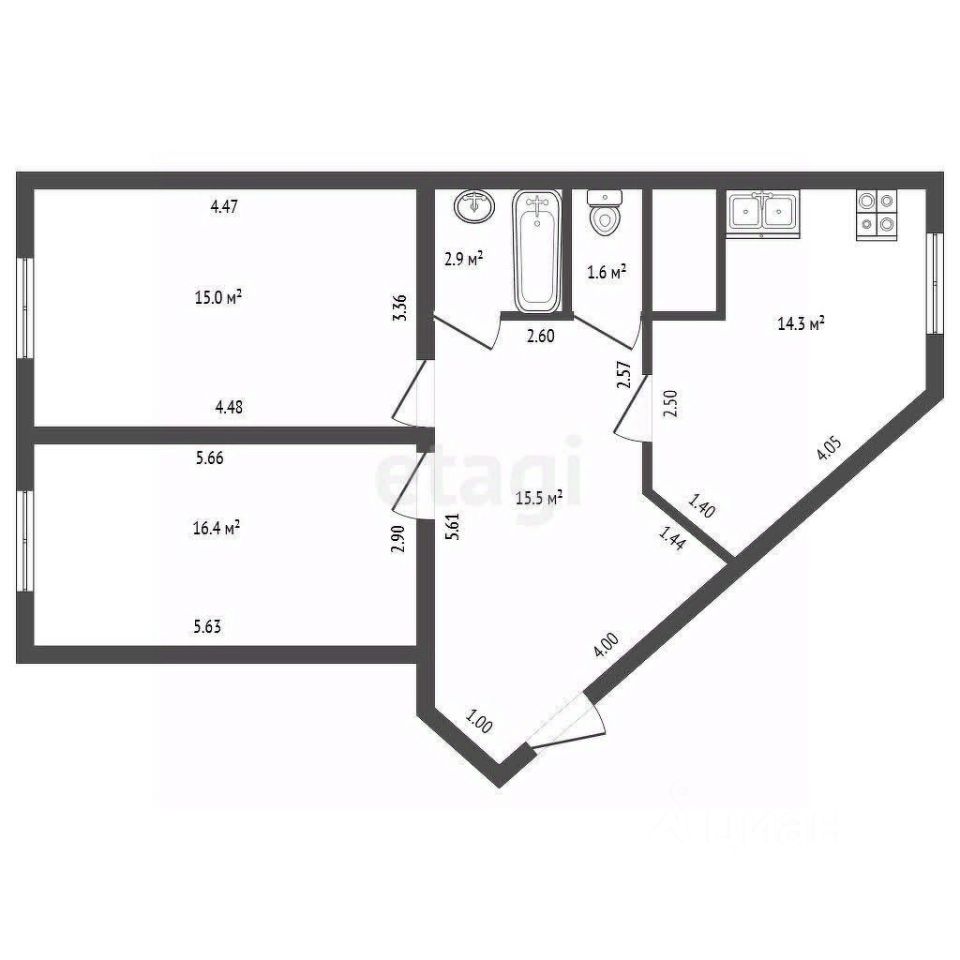 Площадь: 65,7 м² + просторная лоджия (общая площадь с лоджией 67,5 м²).
