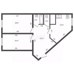 Продаётся 2-комнатная квартира 65,7 м² на высоком этаже в Невском районе. Черновая отделка, свободная планировка