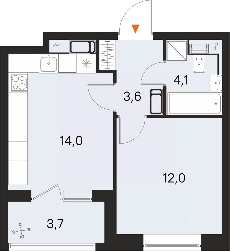 Общая площадь33,7 м²