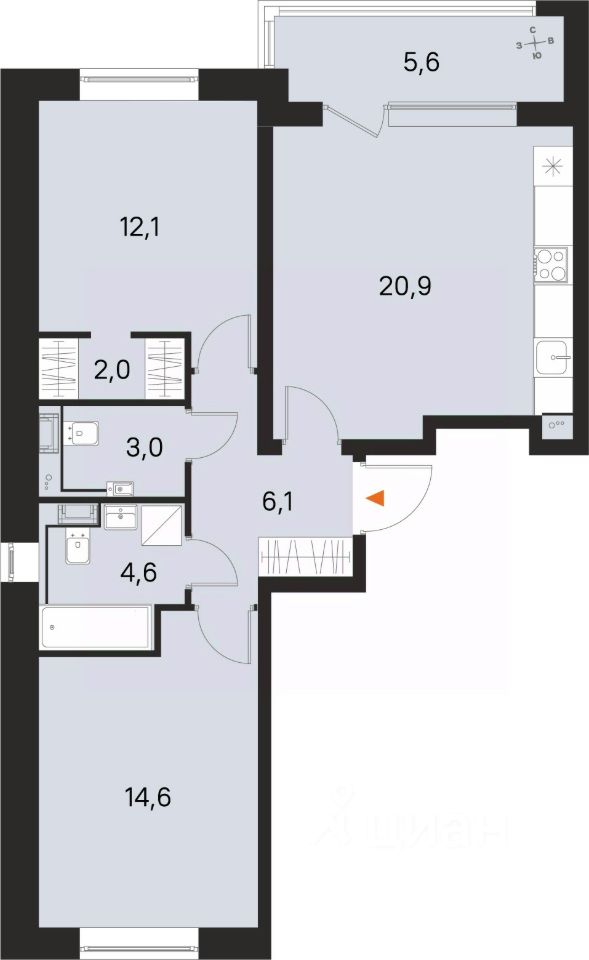 Площадь кухни20,9 м²