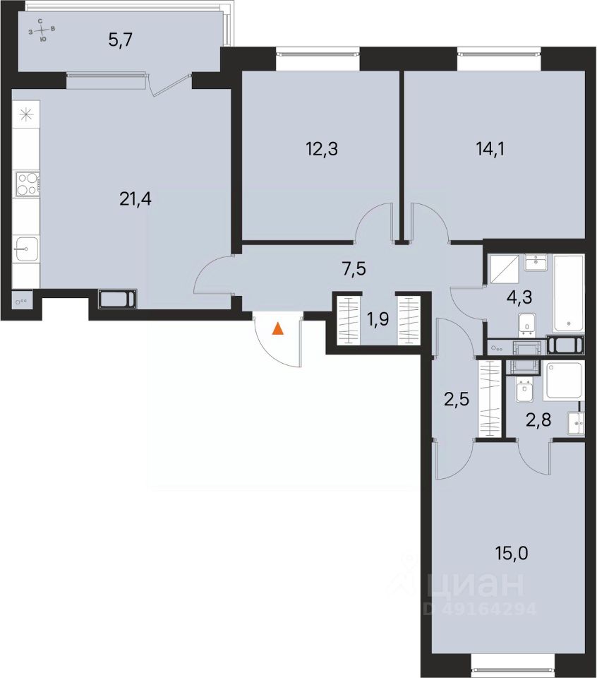 Площадь кухни21,4 м²