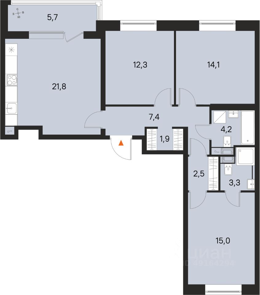 Площадь кухни21,8 м²