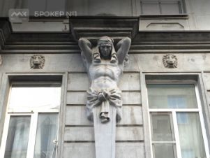 Высокие потолки в 3.5 метра, арочные окна, лепнина в отличном состоянии, парадный вход с лифтом, есть и второй вход, по плану несколько мокрых точек, в том числе в центре квартиры.