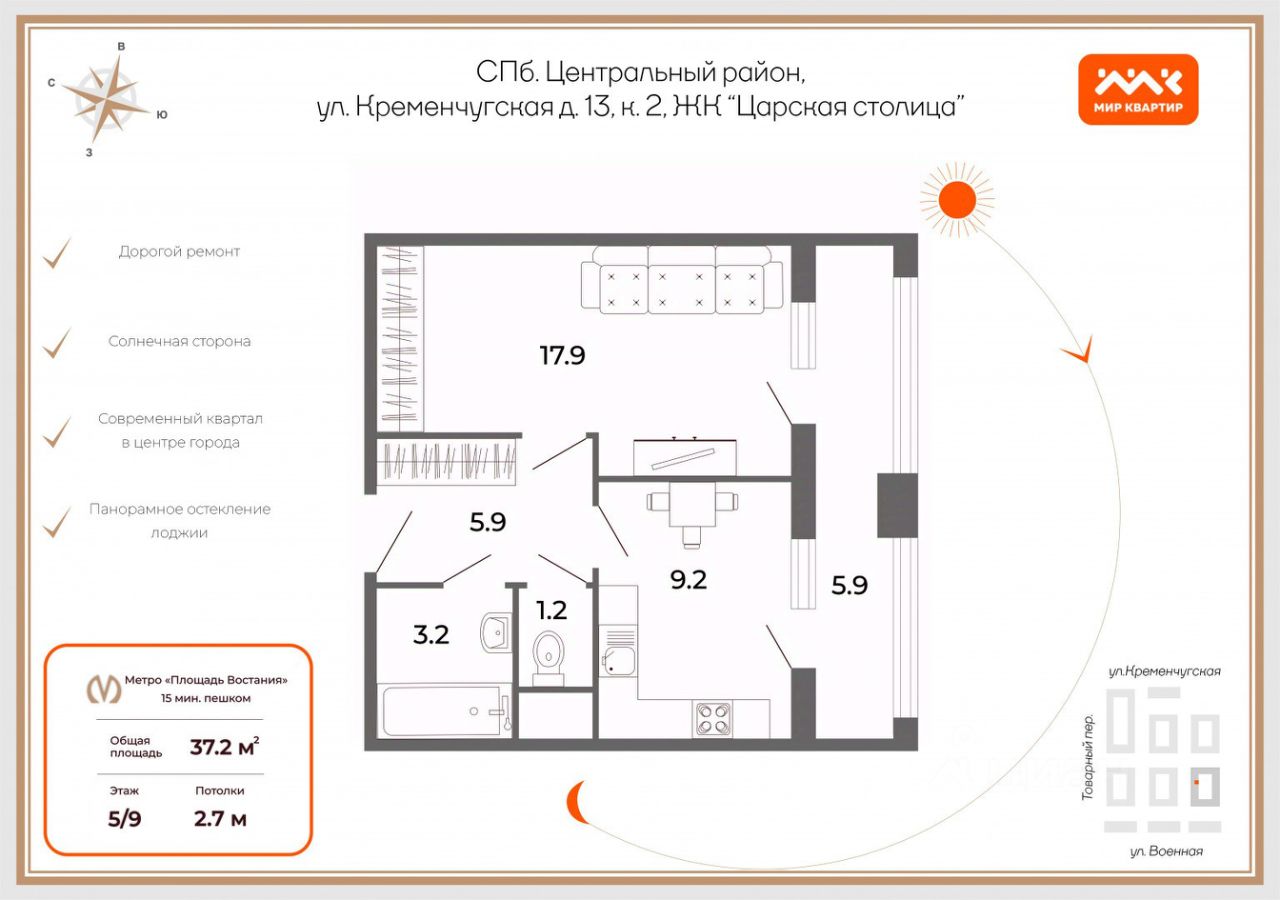 Арт. 132210171 Качественный ремонт, БЕЗ амортизации! Дом комфорт-класса в самом центре Петербурга! БЕЗ студий!