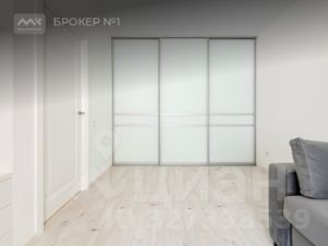 В комнате установлен шкаф-купе, который идеально сочетает в себе функциональность и стиль, гармонично вписывается в интерьер комнаты.
