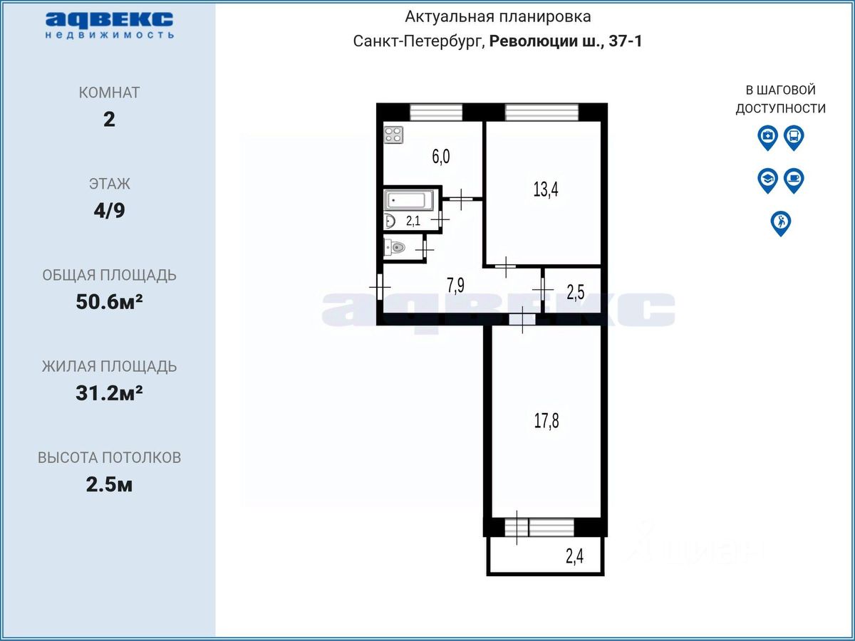 50,6 м²