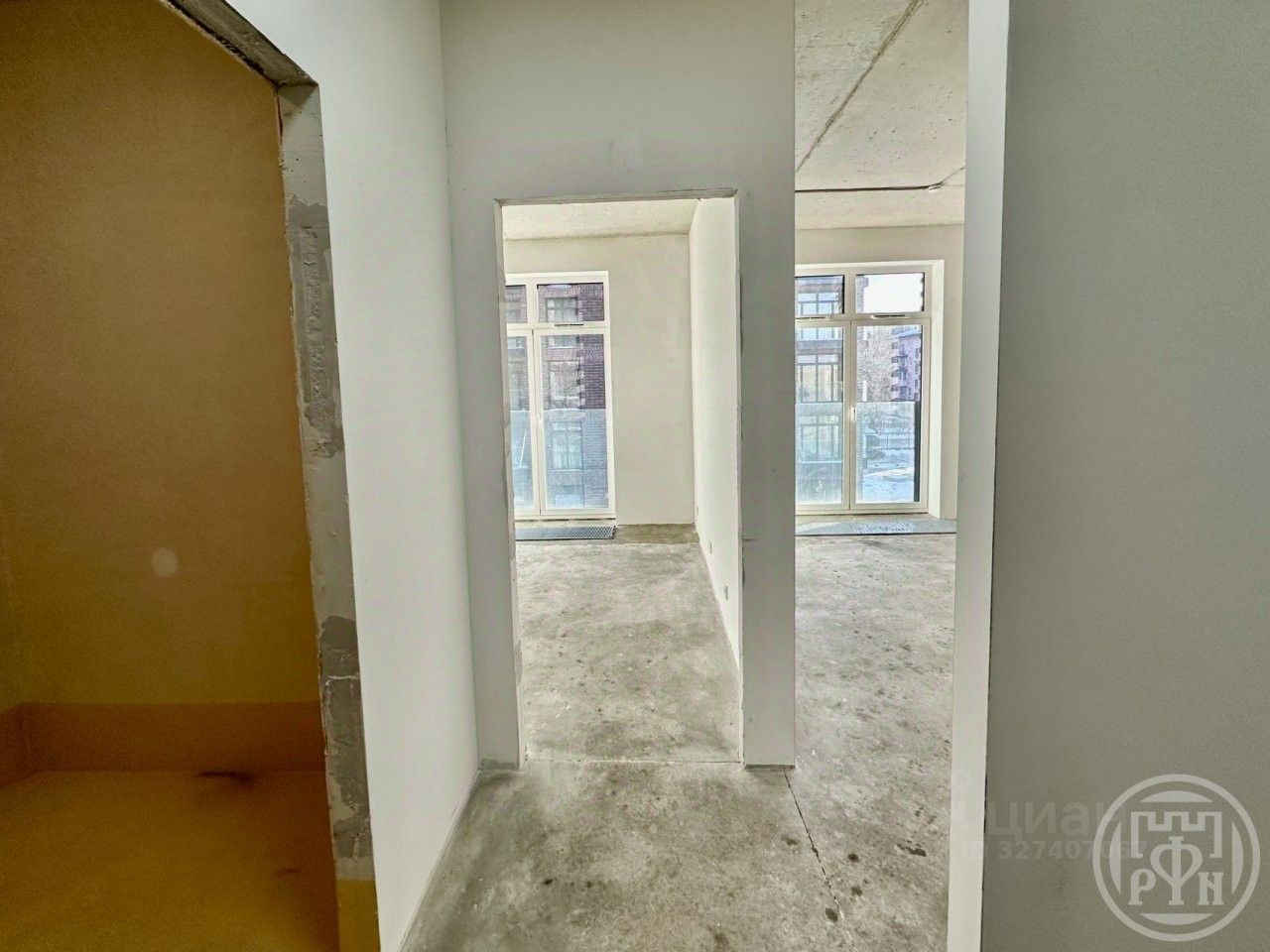 Квартира сдается с подчистовой отделкой: выполнена стяжка полов, гидроизоляция в санузлах, стены выровнены и оштукатурены, произведена разводка электрики, установлены внутрипольные конвекторы, выполнена подготовка для установки систем кондиционирования и вентиляции (в квартире имеется точка подключения к общедомовой системе кондиционирования). В комнате и просторной кухне-гостиной установлены панорамные окна в пол.