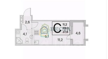Студия, площадью 25.3 квадратных метра, расположенная на четвертом этаже в ЖК Юг Таун