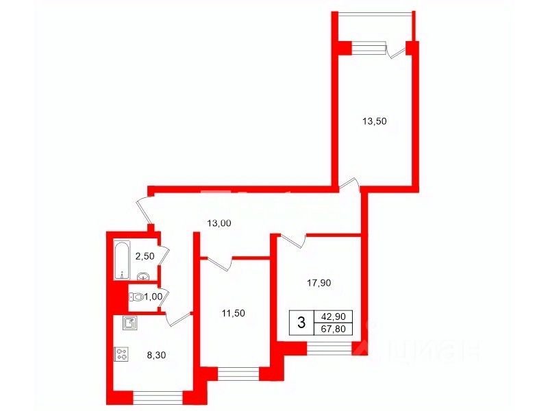 Общая площадь — 68,2 м, все комнаты изолированы, раздельный санузел, сделан ремонт, установлены качественные межкомнатные двери, стеклопакеты, бойлер на период отключения горячей воды.