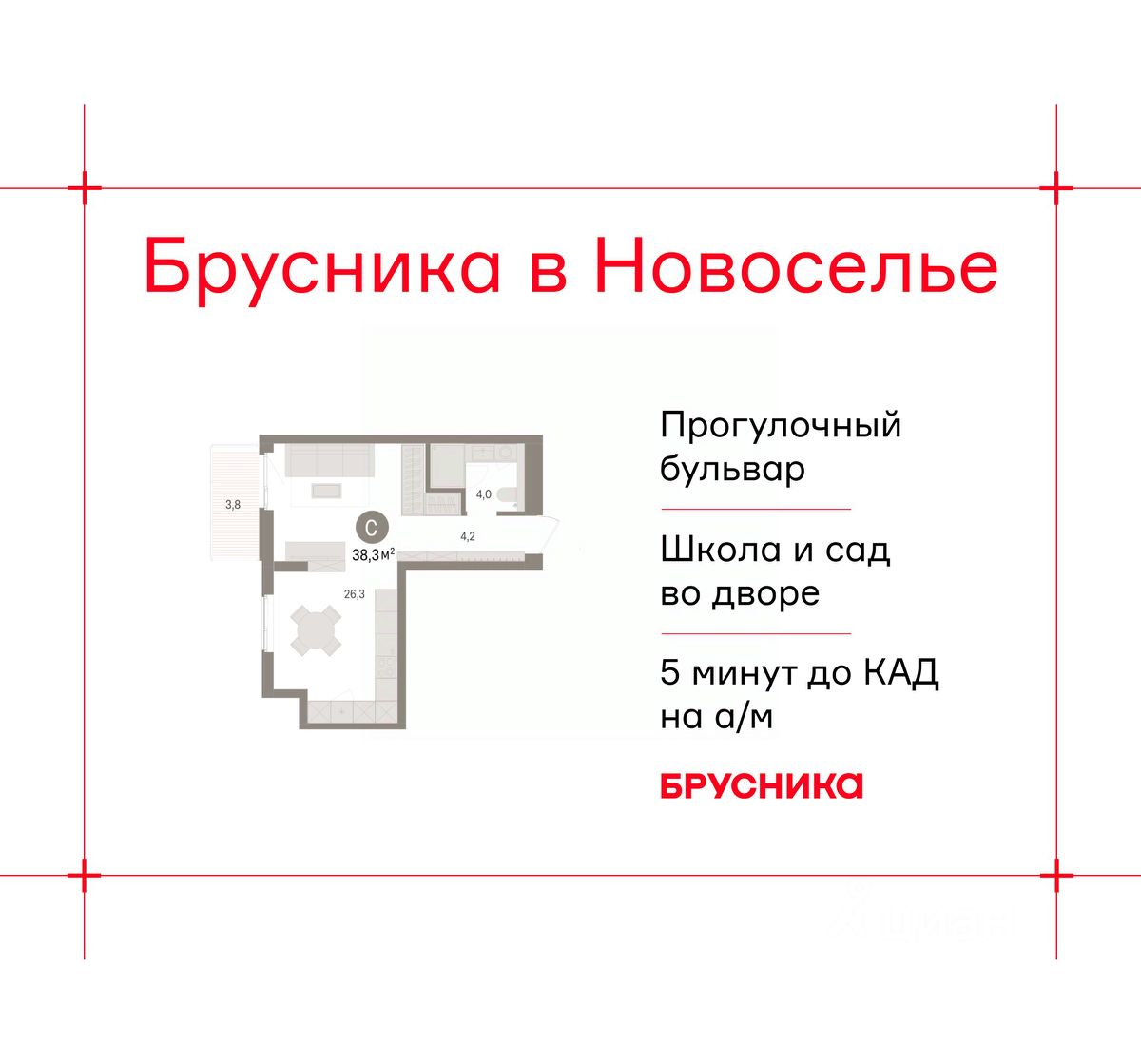 1-комн. квартира-студия с предчистовой отделкой в ЖК "Брусника в Новоселье" на 5 этаже. Общая площадь: 38.32 кв.м., площадь гостиной 30 кв.м., из которых 5 кв.м. выделено под кухонную зону. Все окна выходят на одну сторону. В квартире один балкон, один совмещенный санузел. Высота потолков 2.7 м.