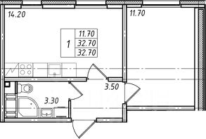 Кухня-гостиная 14,2м² — с двумя окнами. А это значит: много света и реальная возможность грамотного зонирования. Можно выделить зону кухни и полноценную гостиную или даже организовать дополнительное спальное место/кабинет. Пространство не вагонного типа, а действительно удобное для жизни.