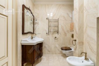 В квартире выполнен капитальный ремонт, сделаны теплые полы в зоне плитки, мраморные подоконники, установлена итальянская кухня, столешница из гранита, а гардероб и комод выполнены из дорогих древесных пород.